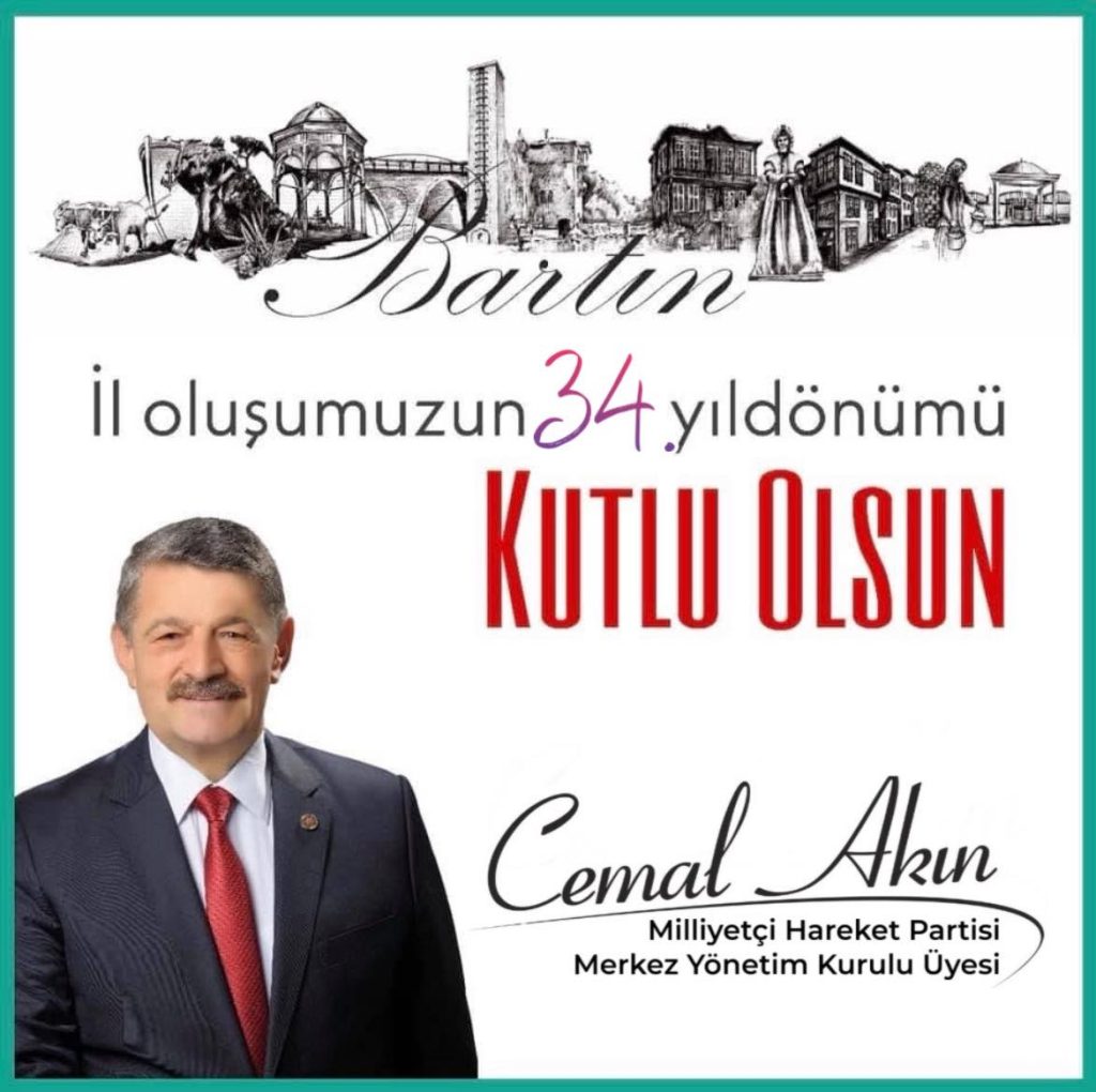 14 yıl Bartın Belediye Başkanlığı yapan şuandaysa MHP’nin MYK Üyesi olarak partisi adına siyasi çalışmalarına devam eden Cemal Akın, Bartın’ın il oluşunun 34. Yılını kutlarken duygulandı. Bartın’a 14 yıl hizmet edip katkı vermekten onur duyduğunu ifade eden Akın, şunları söyledi;