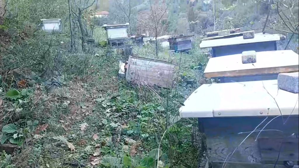Zonguldak’ın Çaycuma İlçesine bağlı Güdüllü köyünde yaşayan Ahmet Pazarlı’nın bir arazide kurduğu yaklaşık 220 adet arı kovanlarından bir kısmı ayı saldırısına uğradı. Ayılar dün gece kovanların bulunduğu alana girerek kovanları devirdi ve kovanların içinden aldığı bal çerçevelerini bir ağacın kenarına taşıyıp zarar verdi.