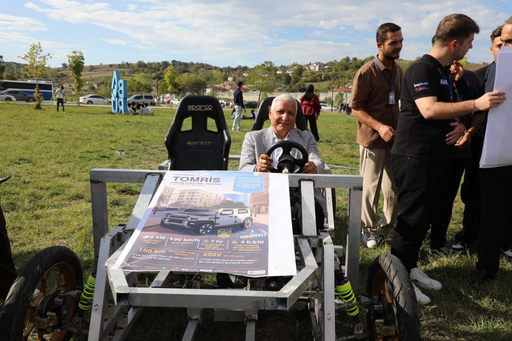 Bartın Üniversitesi öğrenci kulüpleriylede bir araya gelen Kenan Dursun, üniversitenin TEKNOFEST’te sunduğu ve öğrencilerin yaptığı aracı görünce dayanamayıp direksiyonun başına geçti.