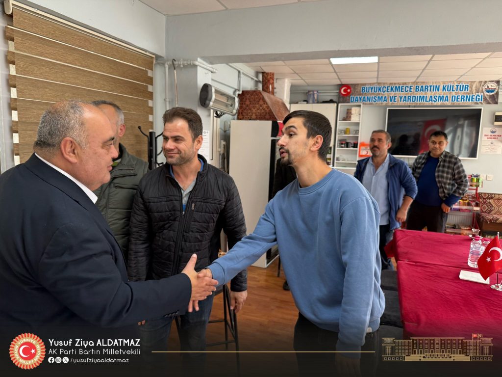 AK Parti İl Yönetiminden Soner Yürekli ve Bartın İli Dernekler Federasyonu (BİDEF) Başkanı Ufuk Şahin’inde kendisine eşlik ettiği Aldatmaz, ilk olarak Büyükçekmece Bartın Kültür Dayanışma ve Yardımlaşma Derneğini ziyaret etti. Buradaki Bartınlılarla bir araya gelen Aldatmaz, “Bartın’dan uzakta olsalar da yürekleri memleket sevgisiyle atan dernek üyelerimizin samimiyeti ve misafirperverliği bizleri bir kez daha gururlandırdı. Birlik, beraberlik ve dayanışma ruhuyla kurulan bu dernekler; kültürümüzü yaşatmanın, gelecek kuşaklara aktarmanın en güzel örneklerinden biridir.” dedi.