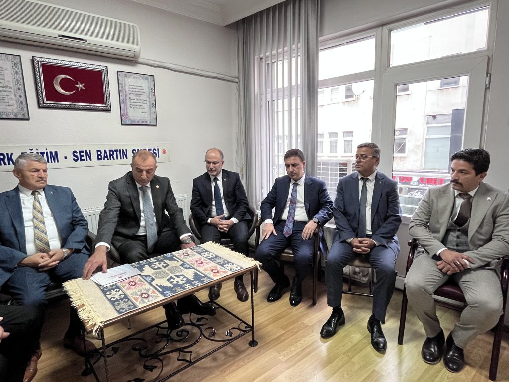 İl Başkanlığı’nda teşkilat mensupları ile bir araya gelen heyete MHP MYK Üyesi Cemal Akın, MHP İl Başkanı Ercüment Özçelik, MHP Bartın Merkez İlçe Başkanı Murat Demir, Ülkü Ocakları Başkanı Halil Köroğlu, İl Genel Meclisi Üyesi Aynur Yıldırım eşlik etti.