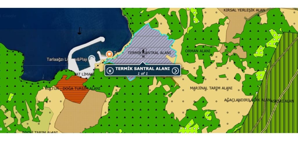 Bartın İl Özel İdaresinin güncel Çevre Düzeni Planın olduğu Coğrafi Bilgi Sisteminde de Amasra Tarlaağzı bölgesinde termik santral alanı yer aldı. Planda gösterilen termik santral alanının yakınında yat limanı, marjinal tarım alanı ve orman olanı olduğu da görüldü.