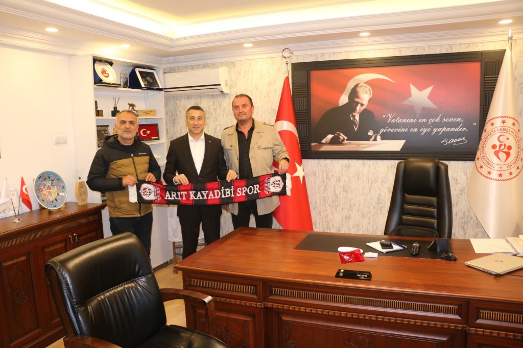 Arıt Kayadibispor Kulüp Başkanı Fuat Kapsız ve kulüp yöneticisi Atilla Duman, Bartın Gençlik ve Spor İl Müdürü Halil Akkaş’ı makamında ziyaret etti.