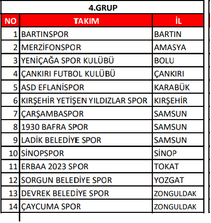 14’lü ve 15’li 5’er grup olmak üzere toplam 10 gruptan oluşan Bölgesel Amatör Lig’de müsabakaların 11-12 Ekim 2025 tarihlerinde başlaması planlanıyor. İşte Bartınspor’un rakipleri: